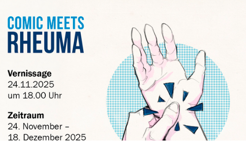 Vernissage to the exhibition ‘Comic Meets Rheumatism’ in the foyer of the INZ